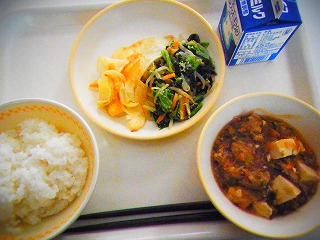 今日の給食 4月13日(月)~17日(金) みやづっこ Twitter Facebook はてブ Pocket LINE コピー 2026.04.13 【4月13日(月)】今日のメニューは、ごはん、マーボー豆腐、もやしのナムル、じゃがチップス、牛乳でした。 Post Views: 29