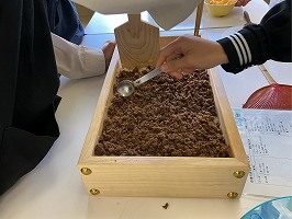 食育授業(R7)2年生が家庭科の調理実習で、丹後地域の郷土料理である「丹後のばら寿司」を作りました。今回は、班ごとに「まつぶた」と「寿司切り」を使い、本格的に仕上げました。給食でも、端午の節句や宮津祭り、七五三など、お祝いの行事に合わせて、「丹後のばら寿司」を作っています。丹後の素晴らしい食文化を継承し、伝えられる人になってほしいと願っています。