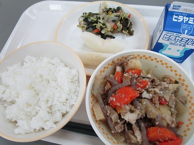 ・ご飯 ・大根のごま煮 ・白菜の中華炒め ・新興梨 ・牛乳
