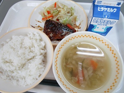 ・ご飯 ・サバのみそ煮 ・大根の酢の物 ・豆腐のすまし汁 ・牛乳