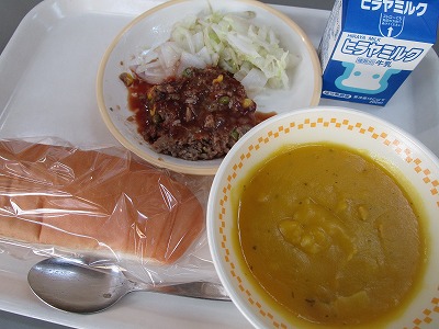・コッペパン ・ミートローフ ・冬のドレッシングサラダ ・かぼちゃのポタージュ ・牛乳