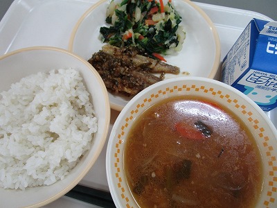 ・ご飯 ・沖キスのから揚げ 香味ソース ・白菜のサラダ ・ごま坦々スープ ・牛乳