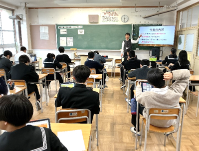 栄養教諭と学級担任で、受験を乗り切る食事についての授業を行いました。