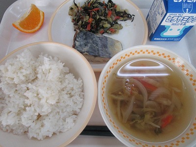 ・ご飯 ・サワラの西京焼き ・ほうれん草とひじきの炒め物 ・白菜のすまし汁 ・いよかん ・牛乳