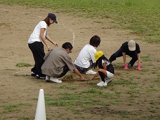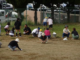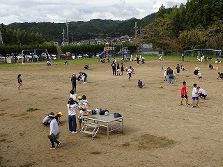 最後は全員でグラウンドの草引きを行いました。午前中に少し雨が降ったことも幸いし、草引きもスムーズにでき、短時間でびっくりするほど草がなくなりました。みなさんのおかげで、気持ちよく学校生活を送ることができます。運動会もいい状態のグラウンドで開催できます。お世話になりました。