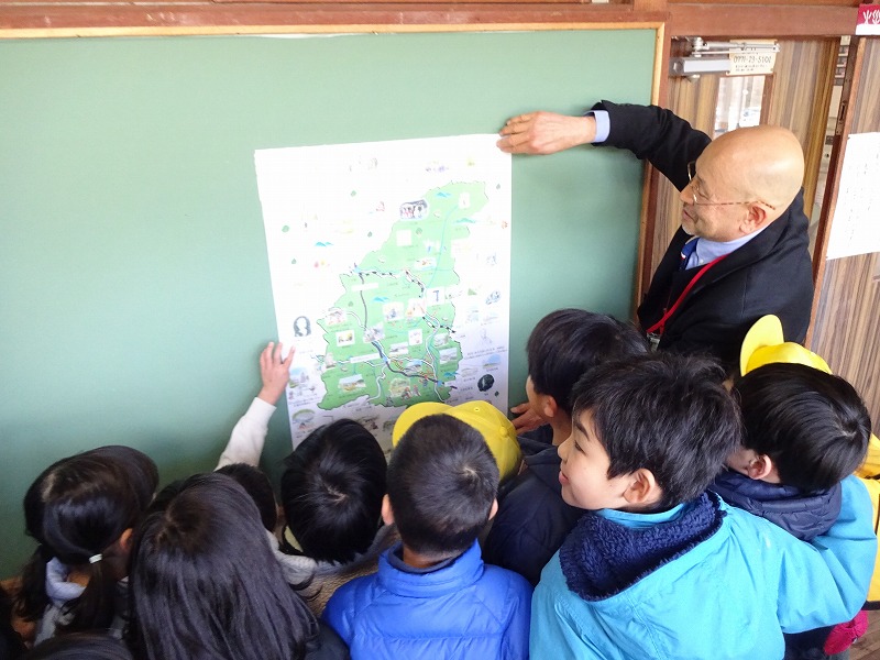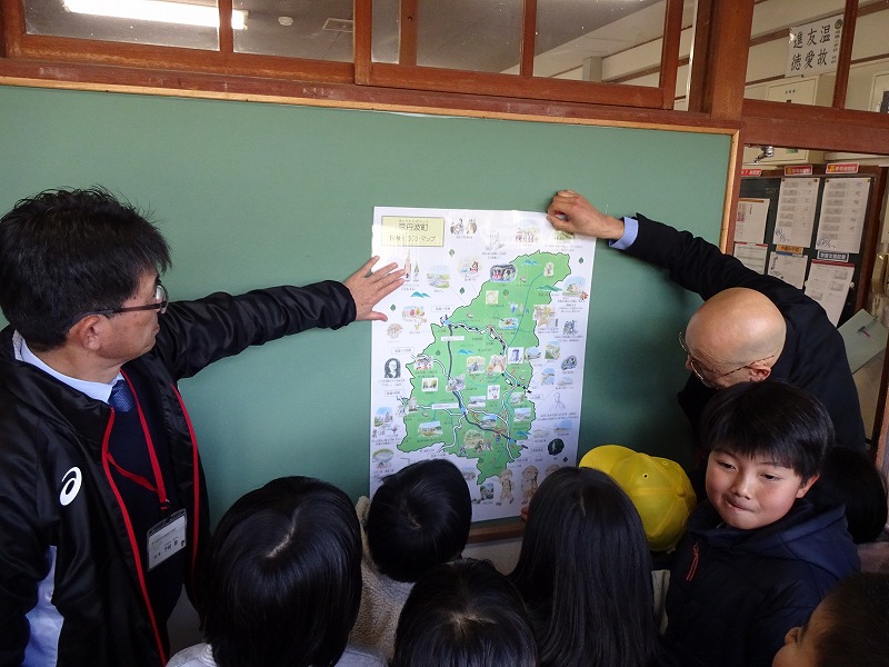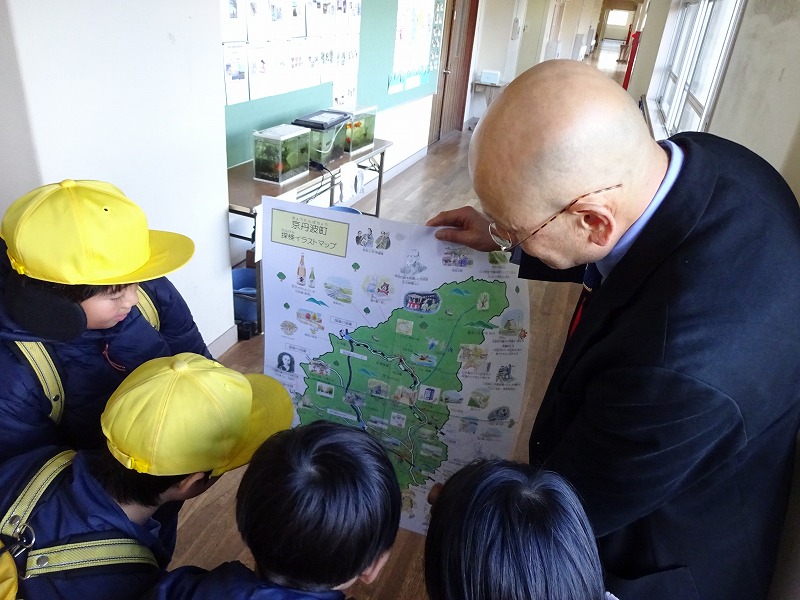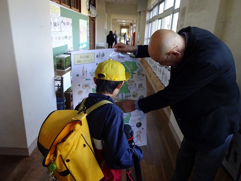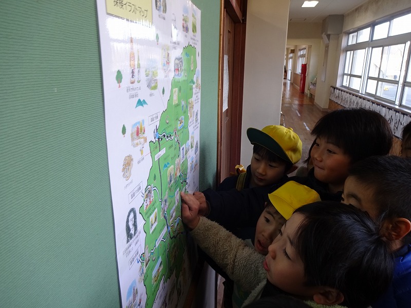 生活科や社会科の学習で、地域探検や地域のことを調べる学習で大いに役立つものです。既に、瑞穂地域のイラストマップは完成しており、学習でも活用していました。このたび披露したものは、京丹波全域のものとなっており、自分たちの身近な地域から、全町へ視野を広げる意味を持っています。瑞穂小学校の自慢のものです。来校の際にぜひご覧ください。