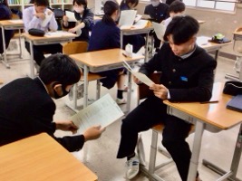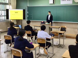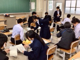 3年生は3回目の学力テストが迫ってきていますね。そんな中、昨日から放課後の学習会の講師として須知高校の先生方にきていただいています。昨日は社会、そして今日は英語です。ペアワークなどを織り交ぜながら、入試問題への取り組み方を教えていただきました。