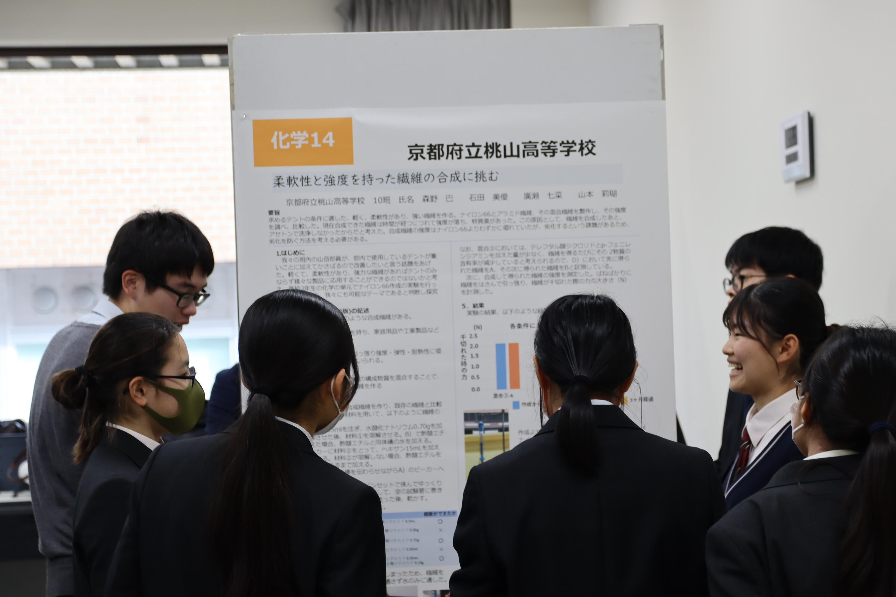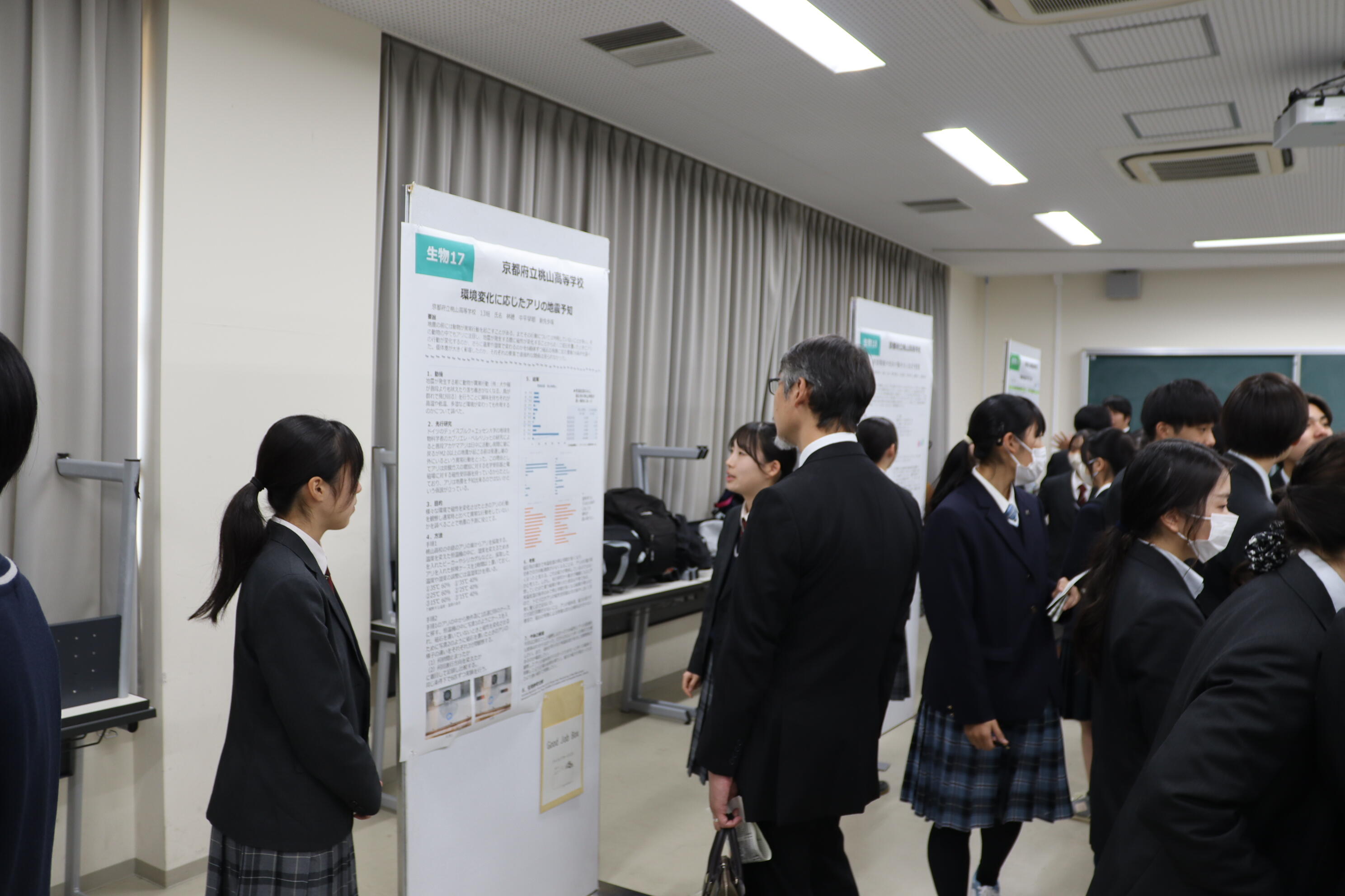 自然科学科2年生は、11月22日に京都工芸繊維大学で行われたみやびサイエンスガーデンに参加しました。府立学校6校が集まり、ポスター発表を行い、議論しあうことで課題研究の内容を深めました。2月に行われる課題研究発表会へ向けて、これまでの探究を振り返り、今後の課題を見つける良い機会になりました。