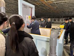 はじめに、過去の水害事例をもとに、都市部で水害が多発する理由や、河川が決壊した際に生じる被害、浸水のシミュレーションを用いた研究について説明を受けました。その後、大型の実験装置を見学し、災害発生時を想定したさまざまな体験活動を行いました。約30cmの床上浸水でもドアが開けられなくなることや、氾濫水が流れ込む階段を上ることの困難さを、実体験を通して学びました。さらに、津波発生の実験装置では、その音やエネルギーの大きさを体感し、砂防ダムの実験では、土石流を防ぐために多様な工夫や方法があることを学びました。