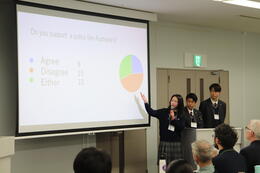 サイエンスイングリッシュプログラムでは、ネイティブ講師の指導のもと、相手に伝わるプレゼンテーションの構成や英語表現、発音について練習を重ねました。2日目の午後には、オールイングリッシュでのプレゼンテーションコンテストを実施し、発表だけでなく質疑応答もすべて英語で行いました。初めての経験に緊張した様子も見られましたが、これまでの練習の成果を十分に発揮し、発表後は会場全体が達成感に包まれていました。