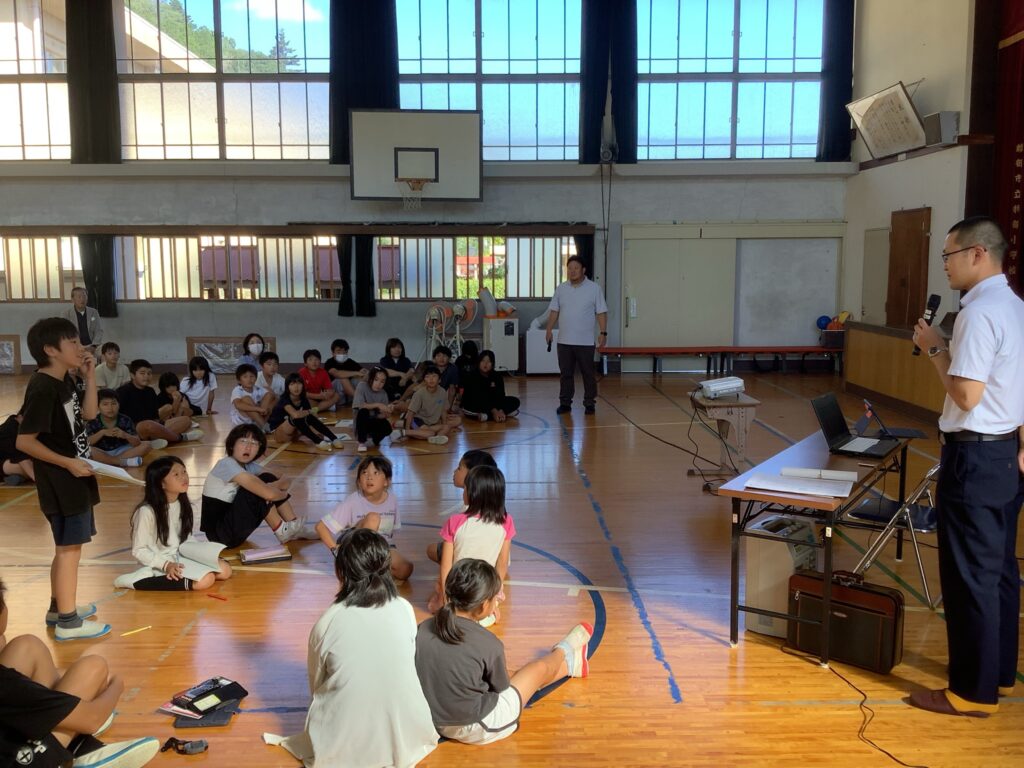 わくわくタイムを今年度の2学期から設定をしています。物部地域のことについてもっと知り「たい」という思いを大切にし、子どもが学び「たい」と思った話を地域の方々にしていただきます。