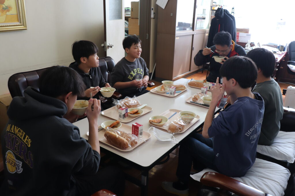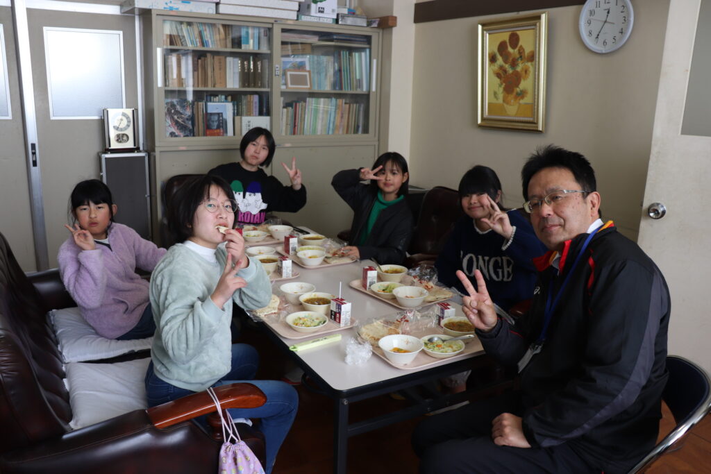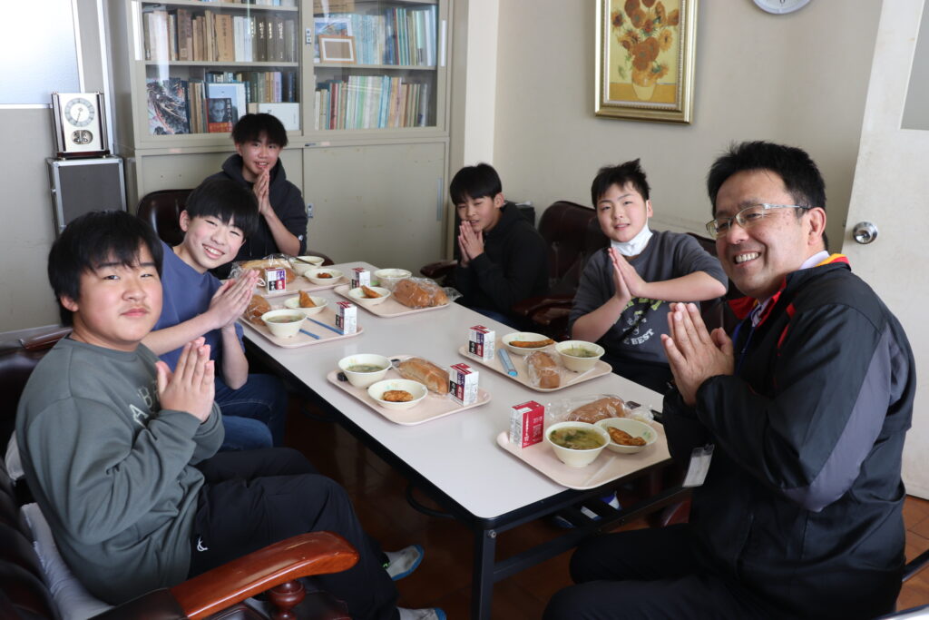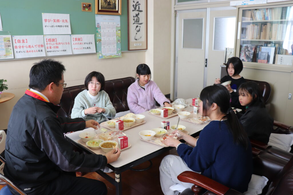 6年生卒業に向けて(校長室で給食) 投稿 2026.03.16 3月12日(木)・13日(金)の2日に分けて、6年生が校長室に来て校長と一緒に給食を食べました。小学校生活の思い出や中学校でがんばりたいこと、将来の夢などについて楽しく話ができました。