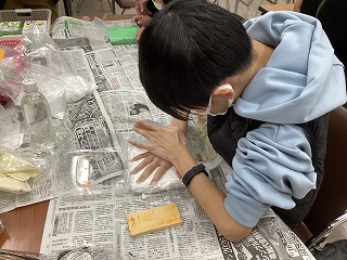 公民科では、テーマ「つながり」「暮らし」において重要な役割を果たしている行政機関について、学習しています。今回は社会科学習の集大成として、専門家の話を聞き、より深い学びにつなげるために京都府北警察署へフィールドワークに行きました。警察署では係の説明、道場や車両の見学、手形を取る体験等をさせていただきました。
