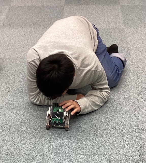 【写真】明るさセンサーを利用してロボットの動きを制御している様子
