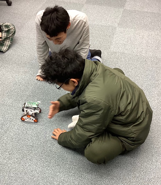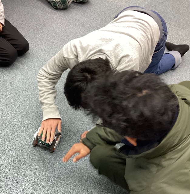 授業では、どの数字キーがどんな動きに対する命令なのかという基本命令を知り、次に具体的な動きをプログラムし、そのように動くかを確かめました。3学期の授業に向けた前段階の取組でしたが、「プログラミングって楽しいな」という感想が生徒から聞こえてきました。