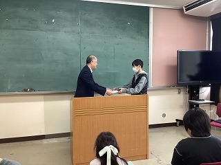 【写真】実用英語技能検定の表彰を受ける生徒の様子