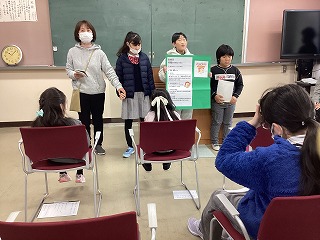 【写真】図書委員会の活動報告をしている児童生徒の様子