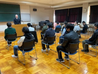 3学期は締めくくりの時期であり、卒業学年は自分自身のことをやりきって卒業、1・2年生は次年度に向けて学校生活を送って欲しいとありました。さらに、午年にかけて「人間万事塞翁が馬」を引用し、目の前の出来事に一喜一憂せず、長い目で物事をとらえる大切さを伝えた上で、一人一人の健康と更なる成長と活躍を期待しているとありました。