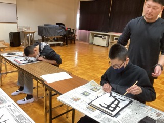 3学期始業式終了後、普通科の生徒を対象に「新春書初め大会」を実施しました。