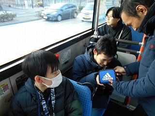 バス内では、舎生と職員がちょうど4:4の同数だったので、舎生が「〇〇先生と僕がペアになって(バスを)降りましょう」と提案してくれ、スムーズに支払いと下車ができました。