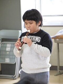 小学部4名で、音楽のまとめを行いました。これまで児童たちは、一生懸命練習に取り組んできましたが、今日はいよいよ本番です。少し緊張した様子の児童もいましたが、リトミックや歌唱、合奏、リコーダーの発表など、すべて素晴らしい発表ばかりでした。見に来た先生たちからは、「とても上手な発表でしたね。」「1学期と比べて大きく成長した姿に驚きました!」「先生がついていなくても、一人で曲に合わせて体を動かしたりしたり、自分の役割を果たしたりする姿に、感動しました。」と嬉しい感想をもらい、児童たちは笑顔で音楽のまとめを終えることができました。