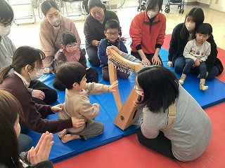 【写真】ハープに触れて音を楽しんでいる様子