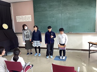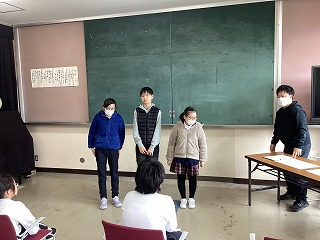 【写真】最後に児童生徒会役員が挨拶している様子