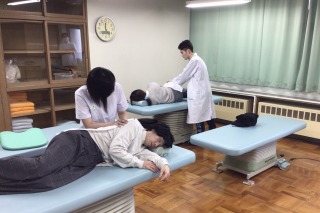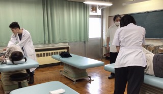 【写真】あん摩実習の授業の様子(2枚)