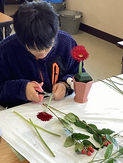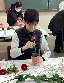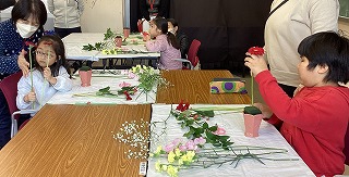 日本フラワーデザイナー協会の方々を招き、フラワーアレンジメント体験を行いました。