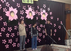 次に在舎生から歓迎の出し物が行われました。1曲目はケツメイシの「出会いのかけら」歓迎会にぴったりの曲です。