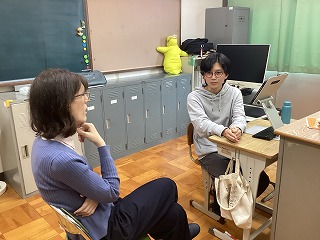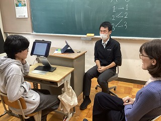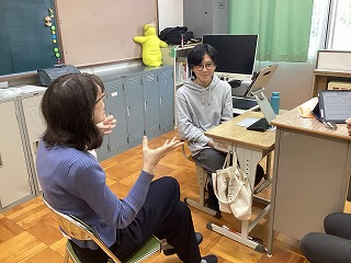 【写真】エバリン先生と生徒が向き合って討論している様子
