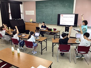 京都府警察 サイバー対策本部 サイバー企画課派遣・ネット安心アドバイザーに来ていただき、SNS、ネットのトラブルについて、話を聞きました。アニメを用いて、「このような場合はどうすればいいでしょう?」など、クイズも取り入れながら進めてくださいました。話し合い活動も意欲的に行い、あっという間の50分間でした。「便利な物を安全に使おう」とまとめをしていただき、講座は終了しました。
