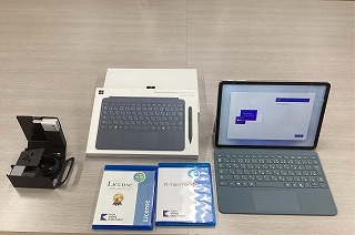 【写真】寄贈いただいたタブレット、キーボード、音声読み上げソフト等