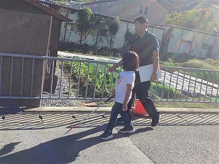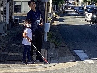 視覚支援センターでは、地域で学ぶ教育相談生に歩行指導も行っています。この日は、白杖を使用した歩行練習を行っている相談生の、通学路の状況と単独歩行の様子を確認しました。
