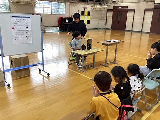 【写真】「箱の中身は何でしょう」に挑戦する児童の様子