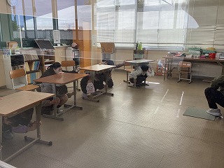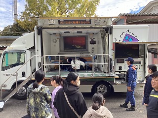 今学期は地震を想定した避難訓練を行いました。緊急地震速報を聞いた児童生徒は、速やかに教室の机の下などに隠れ、放送の指示に従って、避難バッグやヘルメットを着用し避難しました。避難後は、北消防署の方からの話を聞き、起震車体験や消防車の見学(触察)を行いました。地震体験では「この揺れが実際にきたら、こわい。きちんと頭を守らないと。」と今後の地震に備える良い機会となりました。