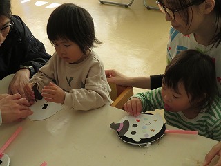 今回は、「音楽あそび」と「季節の制作」の二本立て! 先月に引き続き、今月もまたにぎやかな雰囲気の中スタートしました。