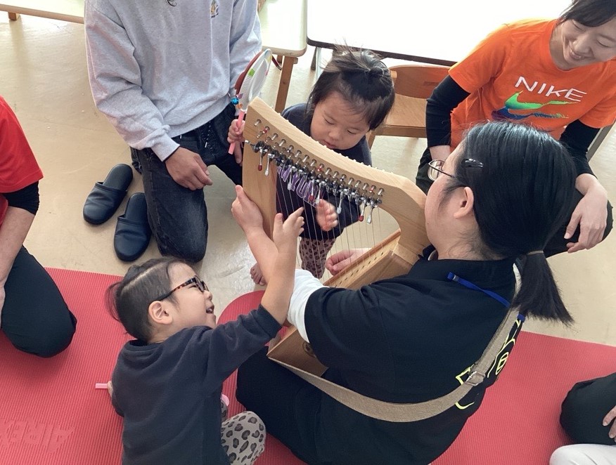 おわりの会では「ミニハープ」が登場。しっとりとした音色を聴きながら「にじ」の歌で締めくくりとなりました。