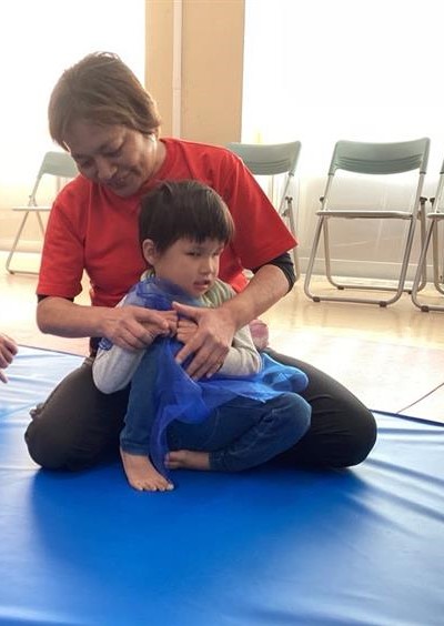 音楽遊びでは、季節の歌に合わせて親子でふれあい遊びをしたり、リトミックスカーフを使って、色や感触、動きを楽しんだりしました。