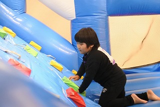 【写真】エアトランポリンに登ろうとする児童の様子