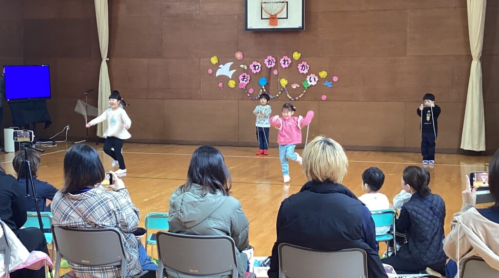 子どもたちの活動3月2日(月)にお別れ会を開催しました。ぞう組5名の幼稚部修了を祝福する会でした。ぞう組の幼児たちは、ダンスや縄跳びを発表しました。他のクラスや学年からも歌やダンス、絵本の朗読などの心温まる発表がありました。保護者からも素敵な手話歌のプレゼントがありました。ぞう組5名のみなさん、小学校でもがんばれ!