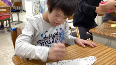 生活単元学習「校外学習へ行こう」では、教室内に隠れた生き物を見つけたり、魚やくらげを作ったりしました。また、公共施設にいるときの声の大きさや過ごし方等、マナーについても学習しました。いよいよ今週末は校外学習本番です。お気に入りの生き物は...