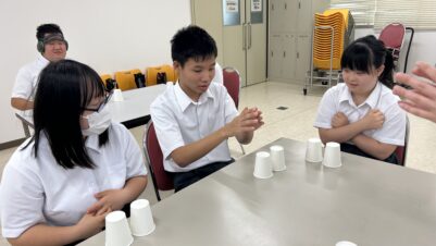 高等部3年生では、創作ダンスに取り組んでいます。「ポケットモンスター」「桃太郎」の2つのグループに分かれて、自分達で曲を選んだり、役を話し合って決めたり、振付や登場のタイミング等を考えたりすることで、とてもユーモア溢れる作品となりました...