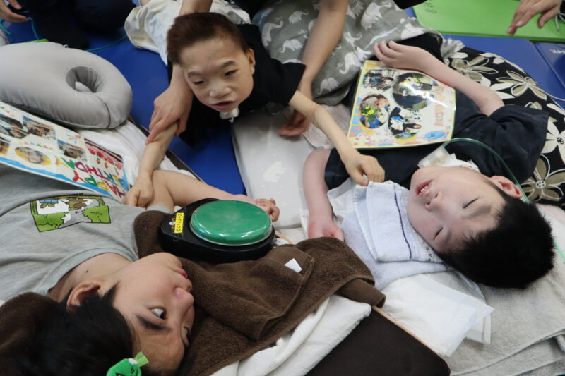 1組 特別活動「お誕生日会」 令和7年度 小学部トピックス 2025.09.22 2学期が始まってすぐにクラスでお誕生日会をしました。歌を歌ったり、プレゼントのカードを送ったりしてみんなでお祝いをしました。写真を取る時には目をぱっちり開けてかっこいい表情を見せてくれたり、友達に囲まれてはしゃいだり、少し緊張しながらくす玉を割ったりと、様々な表情を見せてくれました。 みんなで集合写真。お誕生日おめでとう! 並んで記念写真。2学期も楽しい思い出をたくさん作りましょう!