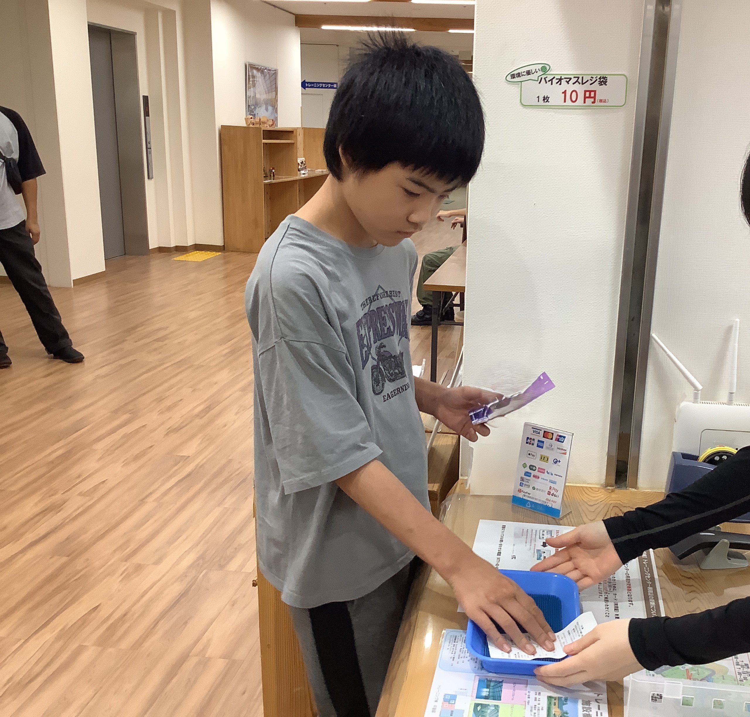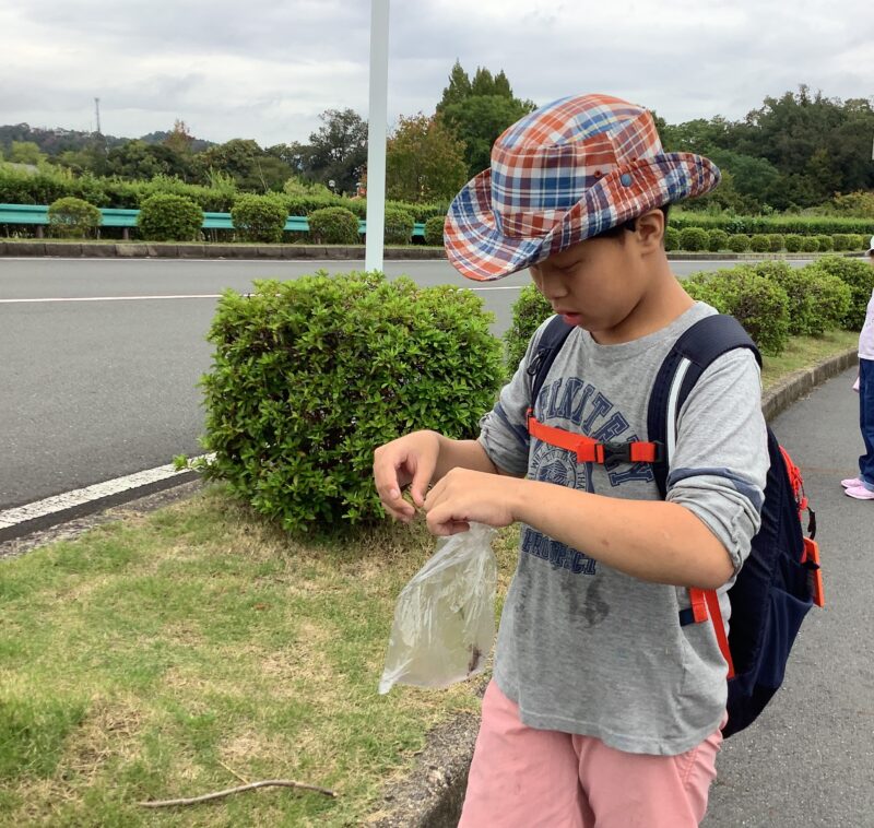 小学部15組「宿泊学習へ行ってきました!」 令和7年度 小学部トピックス 2025.10.14 9月25日・26日の2日間、丹波自然運動公園へ宿泊学習に行ってきました!雨の予報もありましたが、なんとか天気ももち、外での散策やアスレチック遊び等も楽しむことができました。みんなでレクリエーションをしたり、ごはんを食べたり、お風呂に入ったりと、友達と過ごす時間の中で、たくさんの笑顔が見られました♪ 「買い物チャレンジ」で、選んだグミを購入中。 公園散策でバッタを捕まえたよ♪