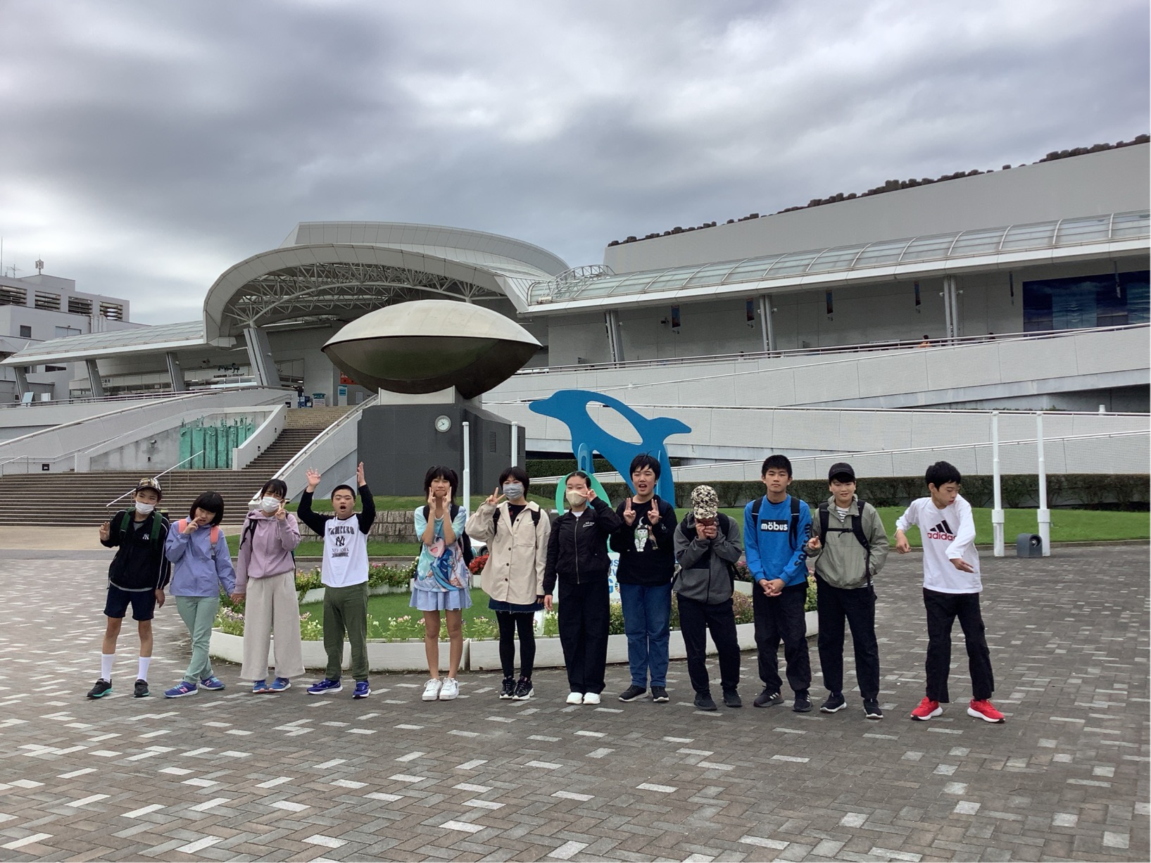 修学旅行3日目も、朝から元気いっぱいに「おはよう!」と挨拶を交わし、おいしい朝食をしっかり食べて、お世話になったガーデンホテルオリーブを後にしました。 本日は名古屋港水族館の見学です。