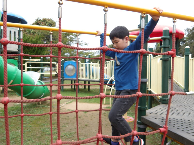 小学部14組 特別活動「宿泊学習」 令和7年度 小学部トピックス 2025.10.27 小学部14組は、9月25日・26日の2日間、丹波自然運動公園へ宿泊学習に行ってきました。好きなお菓子やジュースの買い物に挑戦したり、外での散策やアスレチック遊び等も楽しんだりすることができました。みんなでレクリエーションをしたり、ごはんを食べたり、お風呂に入ったりと、友達と過ごす時間の中で、たくさんの笑顔が見られました。 アスレチックで遊んだよ。 お弁当、おいしいな。