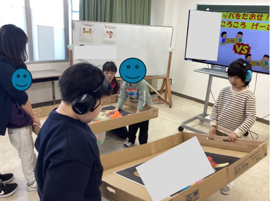 小学部7組 遊びの指導「ふれふれ!7くみ」 令和7年度 小学部トピックス 2025.12.10 学校祭後、友達とのやり取りが多くなって賑やかな7組。“友達を応援しよう!自分も応援しよう!”をねらいにラジオ体操、応援合戦やボール競技に取り組んでいます。前半の体操では身体を動かし、応援合戦では「フレーフレー〇〇さん!」とポンポンを振ります。後半は沢山のボールを、道具を使って的を狙います。最後はボールの数を数え、どちらのチームが多いかで勝敗が決まります! 「フレーフレー!7くみ!」「がんばれがんばれ7くみ!」 二人で箱を動かして沢山のボールをクッパの口に入れていきます。