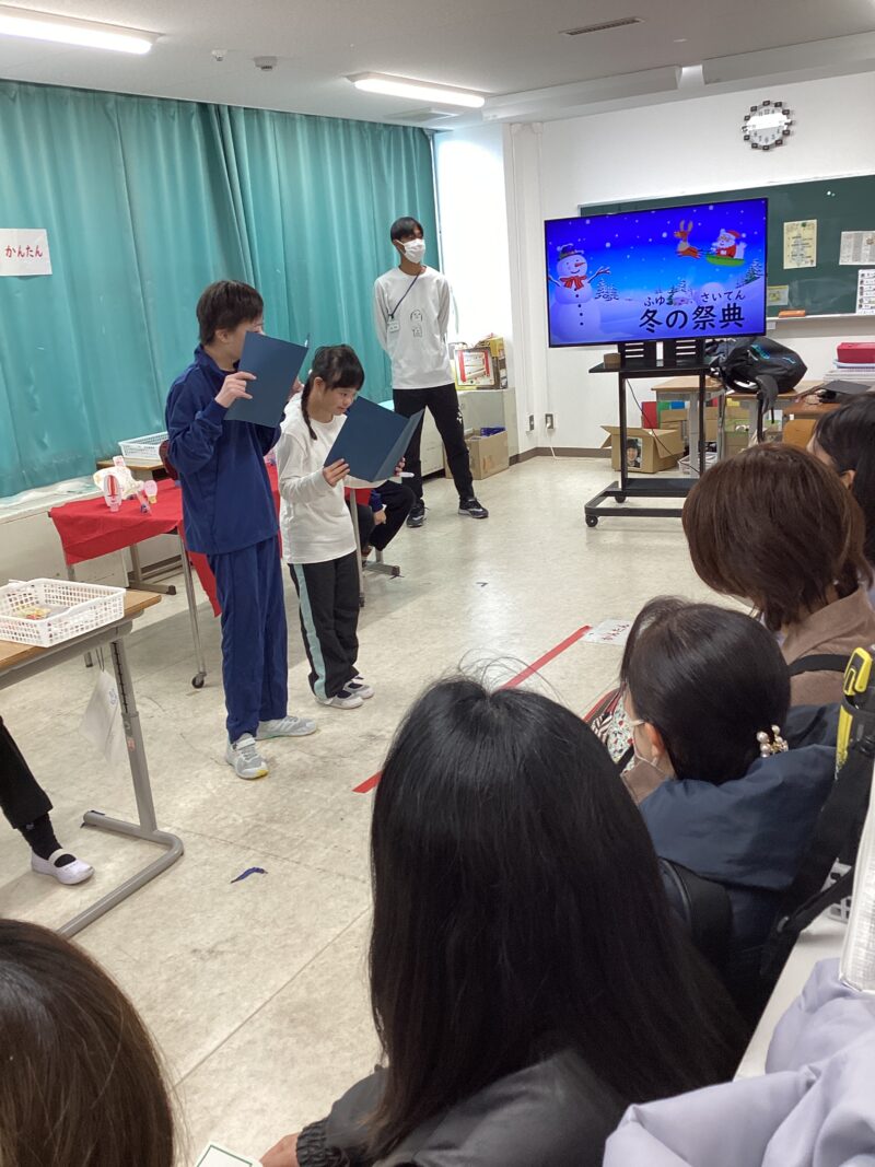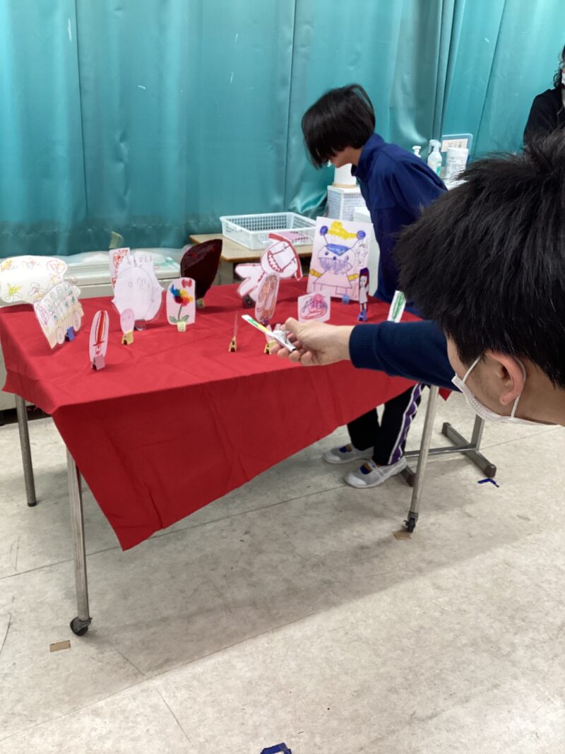 中学部1組2組 生活単元学習「冬の祭典」 令和7年度 中学部トピックス 2025.12.19 中学部1年生は11月の「むこフェス」のお化け屋敷に続き、「冬の祭典」で射的屋さんをしました。生活単元学習の授業で「ゴムの力」について学習してきたことを活かしてゴム鉄砲作りをし、たくさんのお客様に遊んでもらいました。事前の準備はみんなで協力することができ、当日は、一人一人が自分の役割をきちんと果たし大成功につながりました。 お客様へのあいさつと遊び方の説明でスタートです。 一人一役の仕事をみんなでがんばりました。