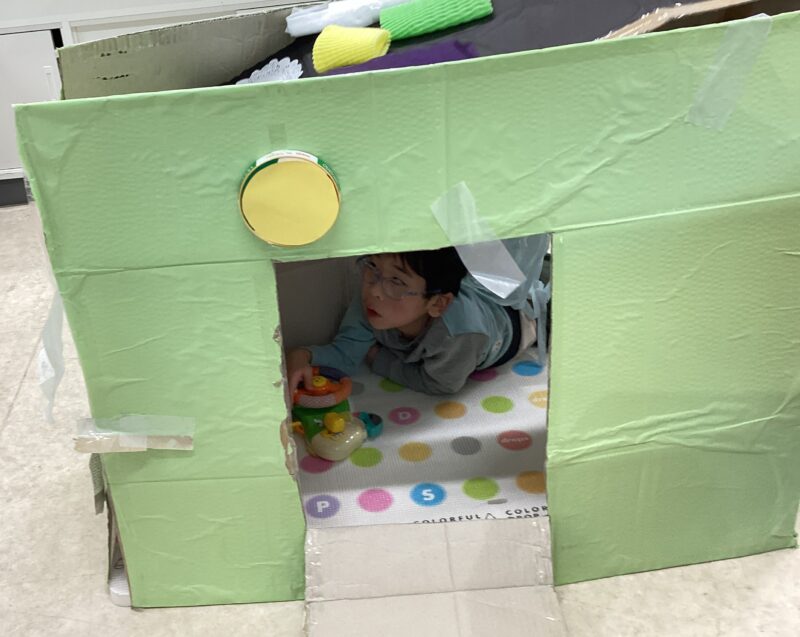 小学部4組 遊びの指導「たのしいクリスマス」 令和7年度 小学部トピックス 2026.01.13 低学年の4組では、作って遊ぶ「たのしいクリスマス」に取り組みました。様々な素材から自由に選び、ちぎって貼ったり描いたりしながら段ボールのおうちを飾りました。暗くなった教室で自分のおうちに入ってライトをつけて眺めたり、窓から隣の友達を見たりして、思い思いに楽しみました。他にもいくつかゲームを楽しみ、みんなでサンタを待つクリスマスの雰囲気を味わいました。 「ぼくのおうち」みんな、居心地良いからおいでよ~。 「ぼくのおうち」サンタさん、どこから入ってくるかな~。